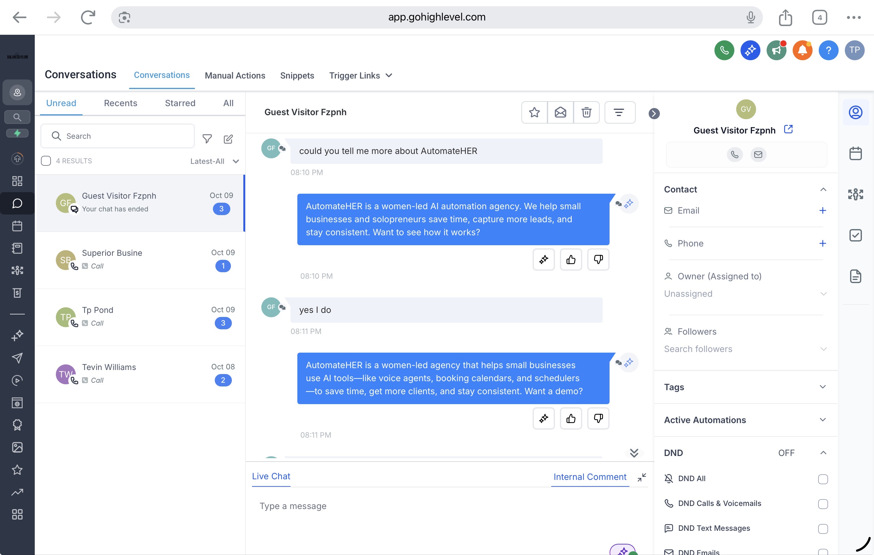 We natively integrate with Facebook, Instagram, and Meta Business Suite through HighLevel.